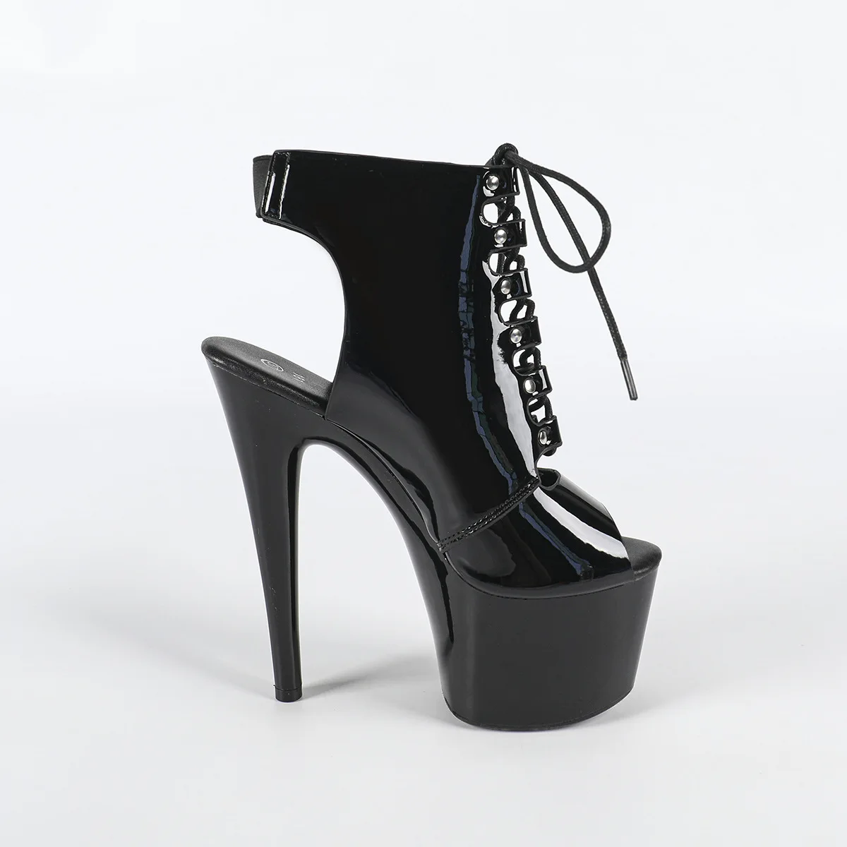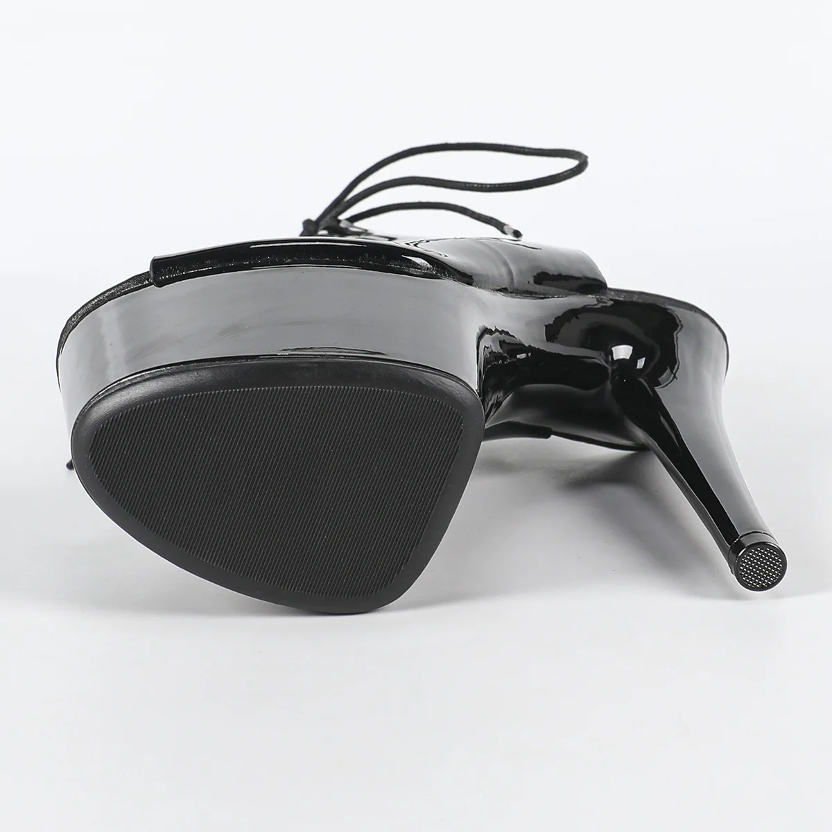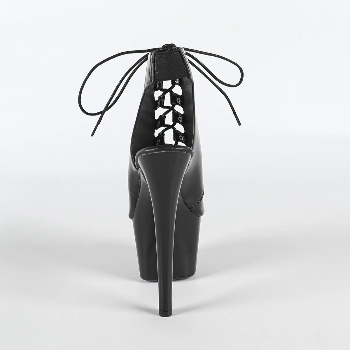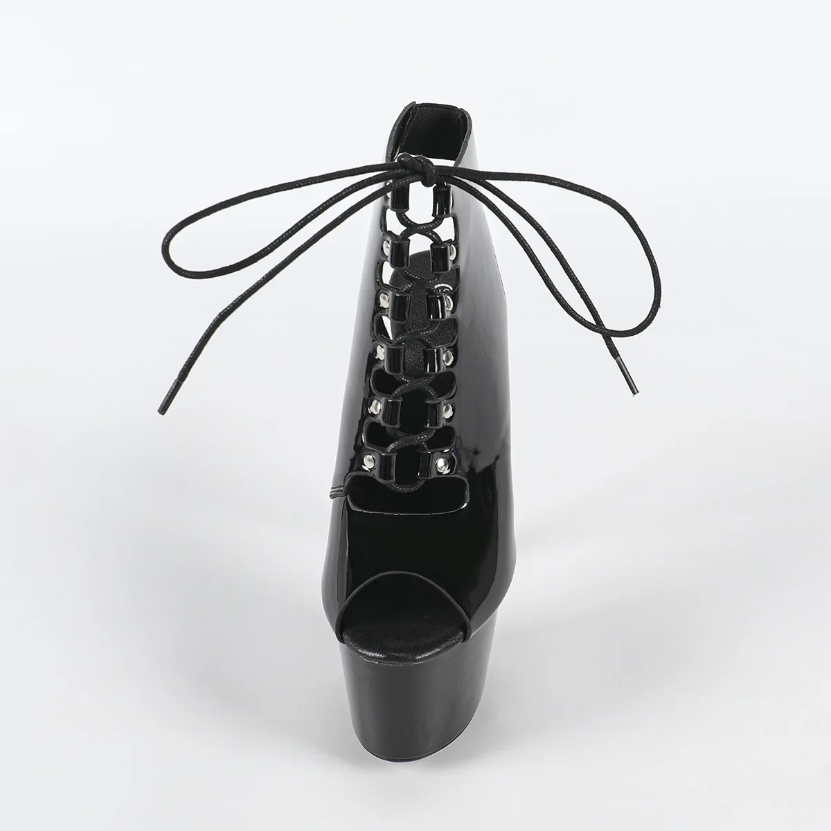 Peep Toe Platform Ankle Boots – 17cm High Heel Lace-Up Heels