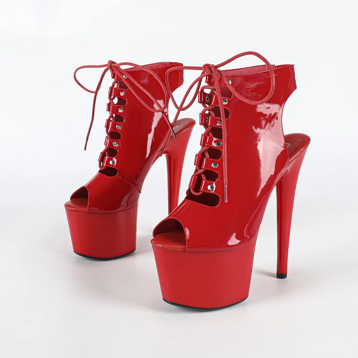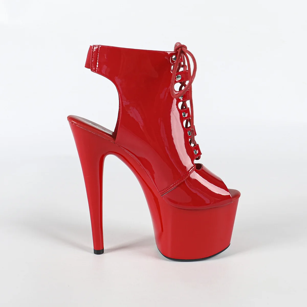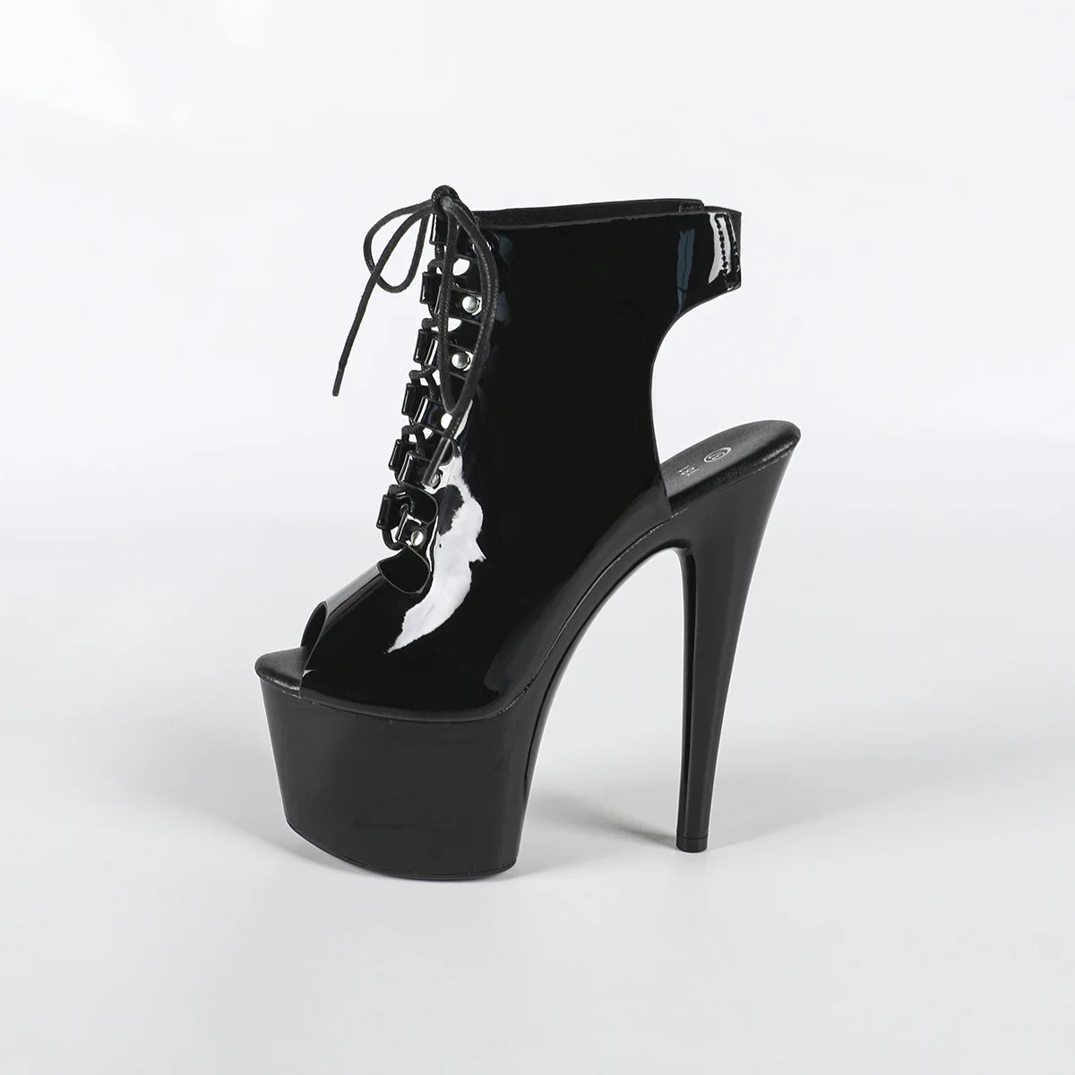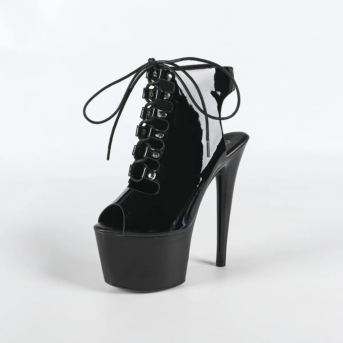 Peep Toe Platform Ankle Boots – 17cm High Heel Lace-Up Heels