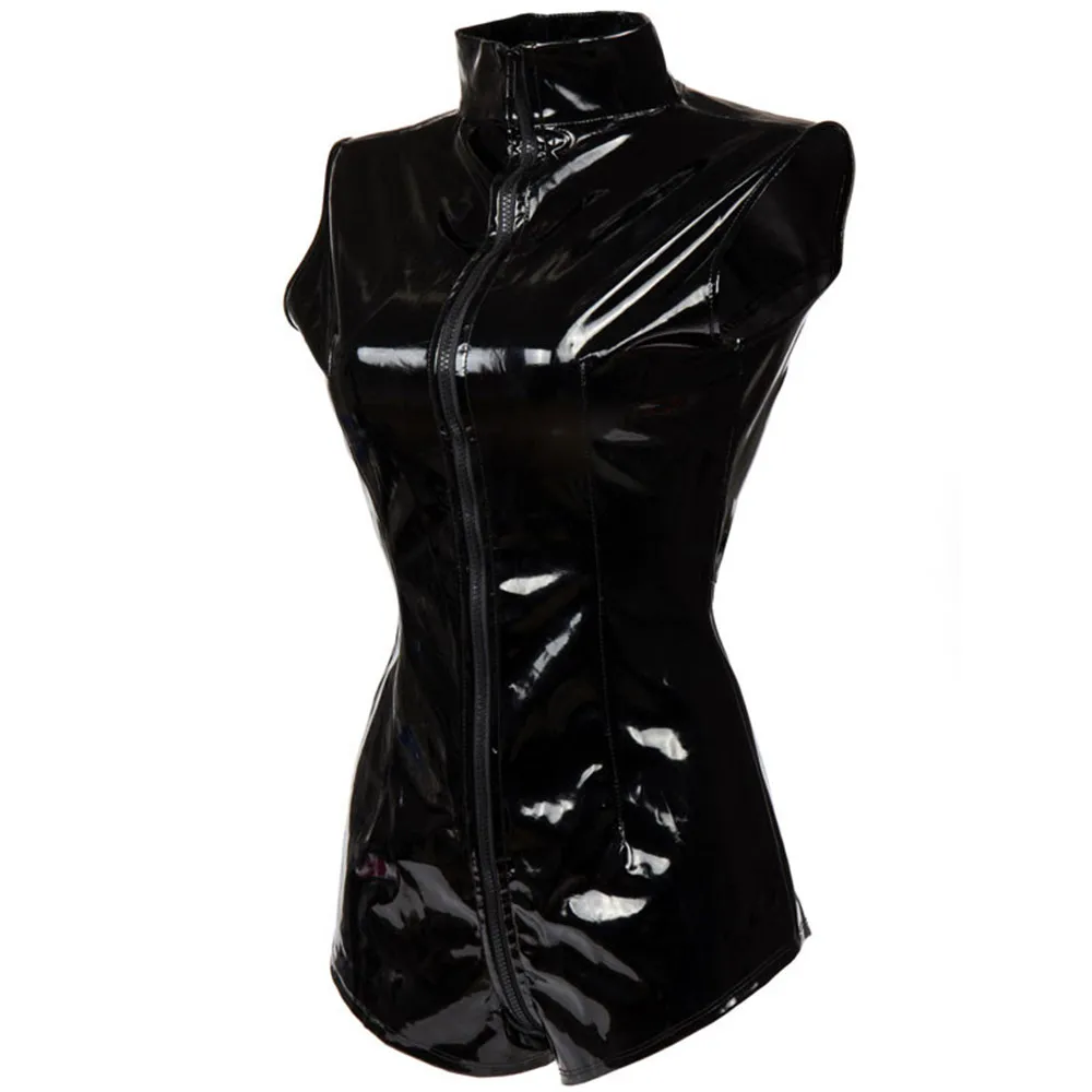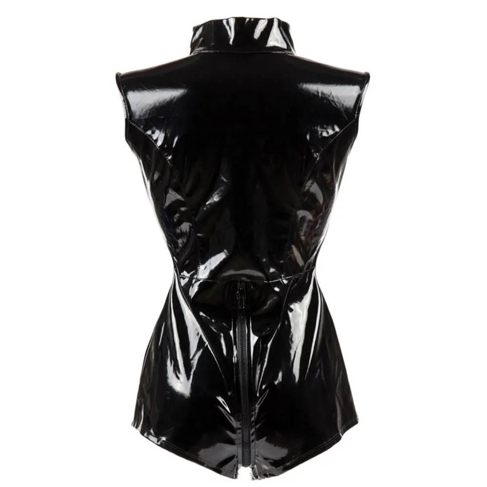 Sexy Black Shiny PVC Latex Bodysuit Zipper Wetlook PU Faux Leather Catsuit Women Fetish Clubwear Jumpsuit Costume