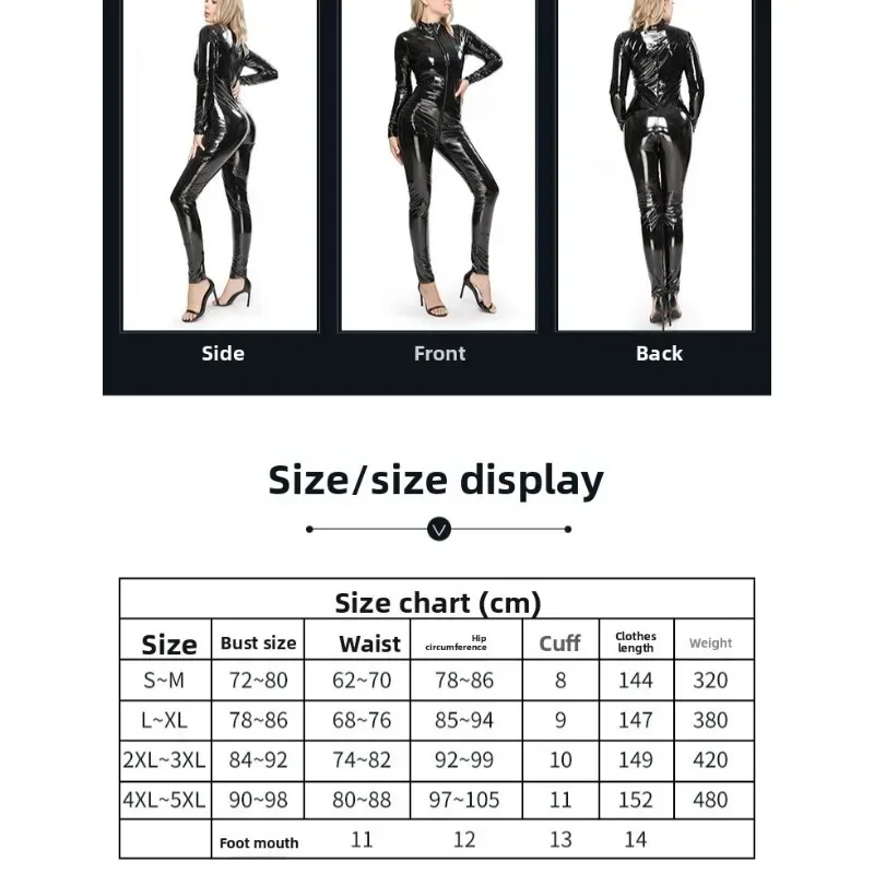 Women Wet Look Patent Leather Bodysuit Zipper Front Stage Performance Costume Clubwear Shiny Bold Dramatic Theatrical Look
