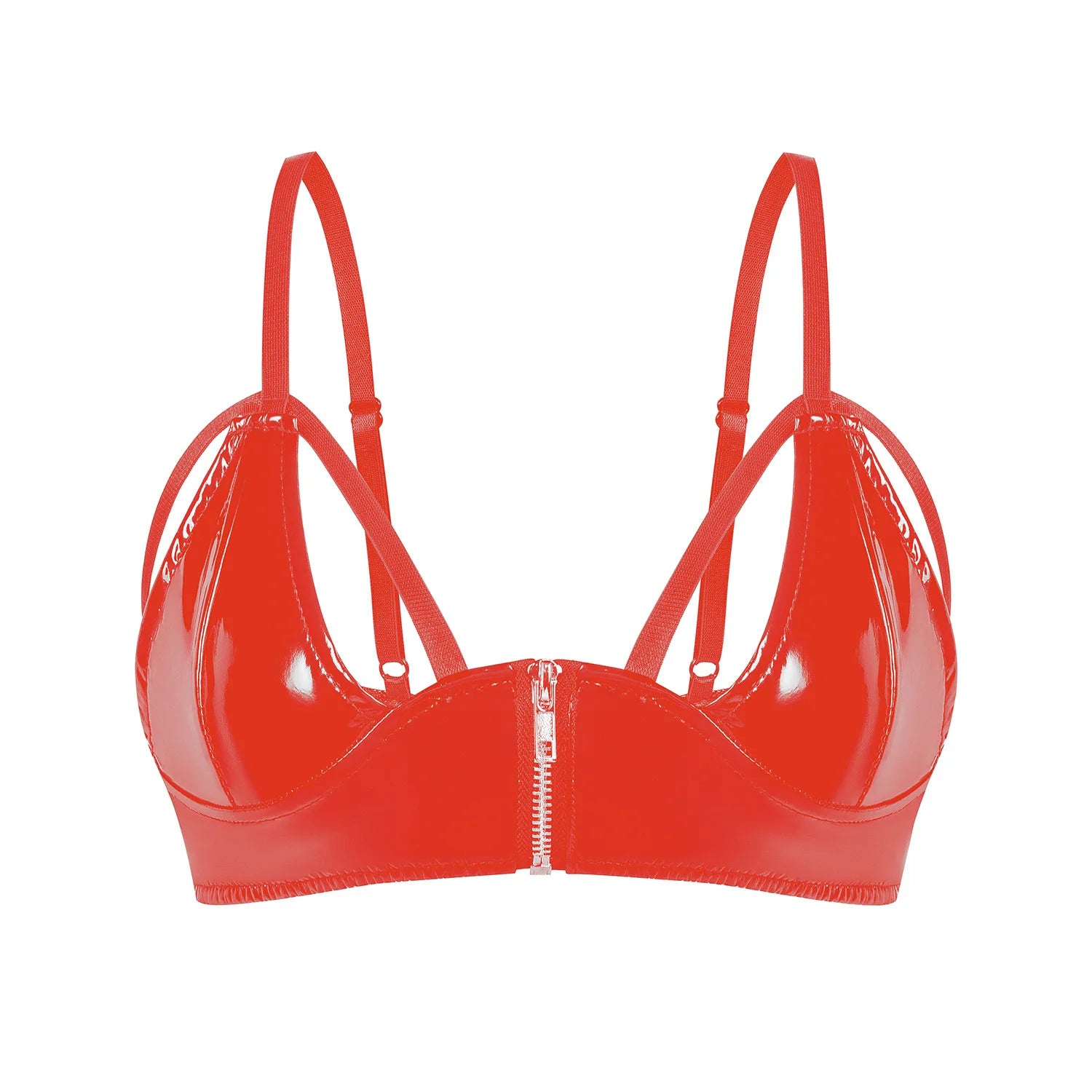 Womens Ladies Front Zipper Crop Top Pole Dance Rave Bra Tops Latex Wetlook Patent Leather Bra Tops Rave Party Clubwear S-XXXL